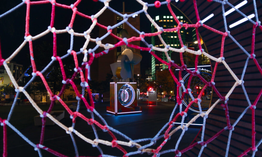 The act of dreaming and awakening to the same sounds, music, and voices of history juxtaposed against the backdrop of an overwhelming metropolis brings one closer to understanding contemporary Indigenous voices. Remember: These stories of culture are still living and breathing today as they have for generations. Just as dreaming is a sign of sleep, sleep is a sign of refreshment, and this installation refreshes our continued need for connection to nature and to those we’ve failed to listen to.