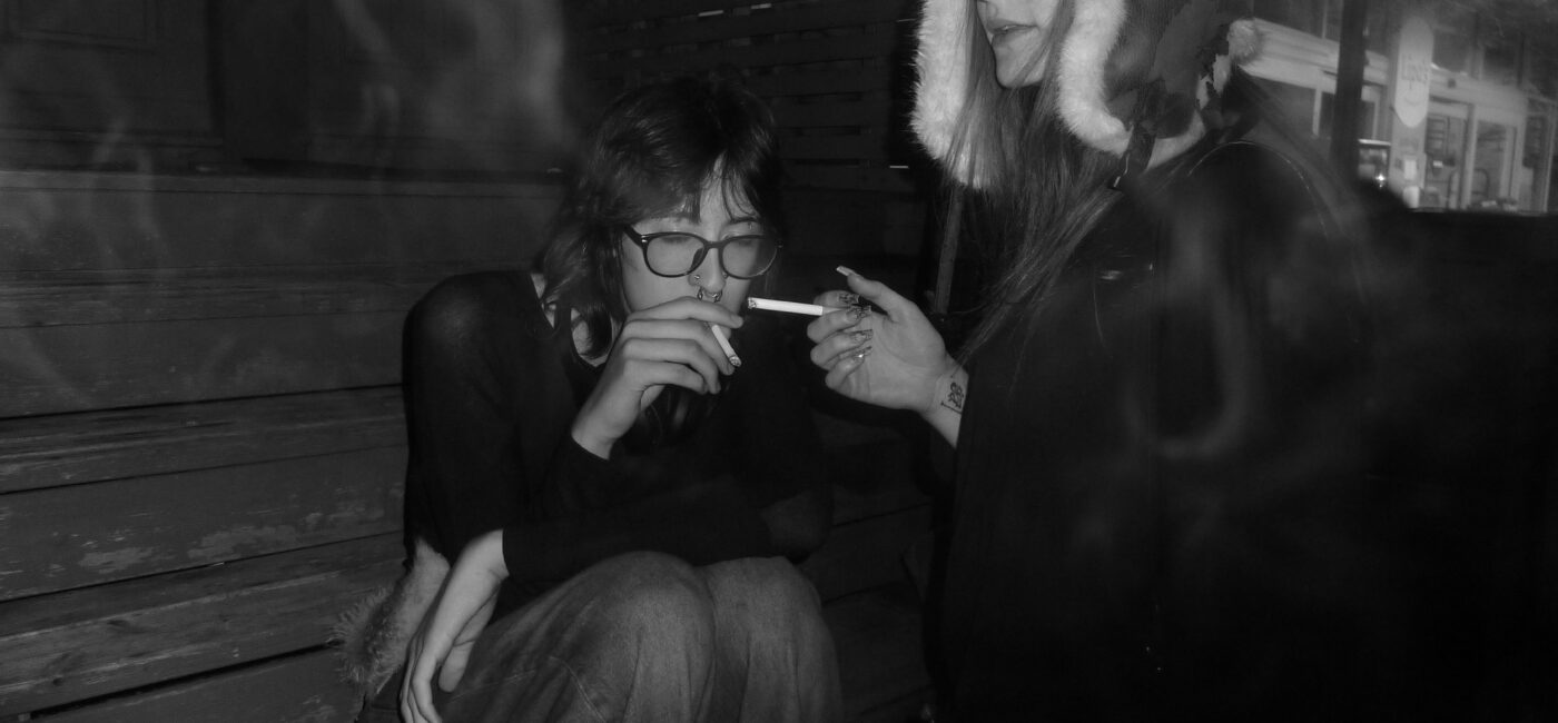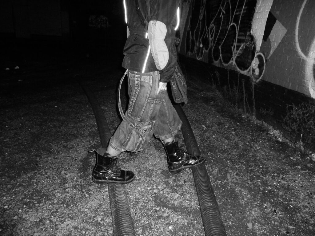 sweaty and superficially pacified bodies gather just beyond the veil of God: the city breathes in the nightsmoke exhaled by spike-clad angels on the venue steps. drum, sound and noise from underneath huddled houses and obscured window pass through and by, to return again.