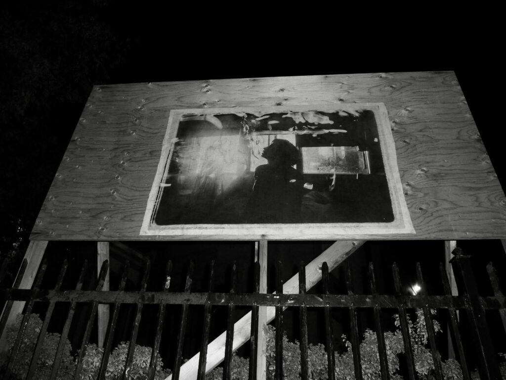 clenched-jaw defiance: out of place for a muse, he looks up and towards the obscured skyline, past the shaved wood of gutted tree and rusted screw, into the night. o deity of quiet revolution, watch over us in your impermanent existence, for you only exist in the refuge of darkness, to be torn away in the morning.