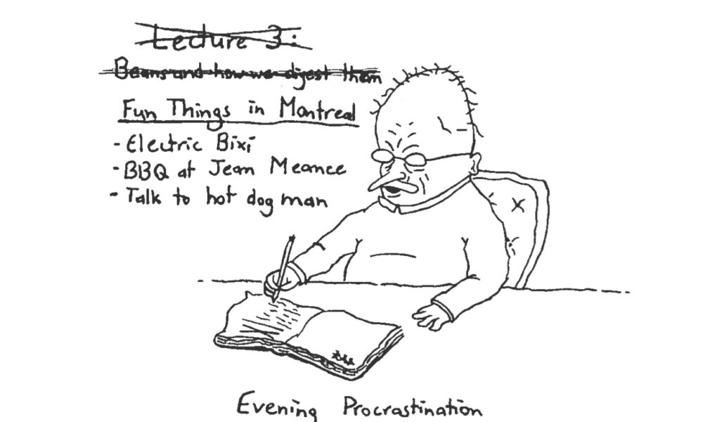During McGill’s never-ending midterm period, motivation decreases at the speed of light. Your long hours at the library get less and less productive, yet the foreboding your incessant workload inspires, combined with the battle it took to secure a seat on your favourite floor of the library, keep you rooted in place.